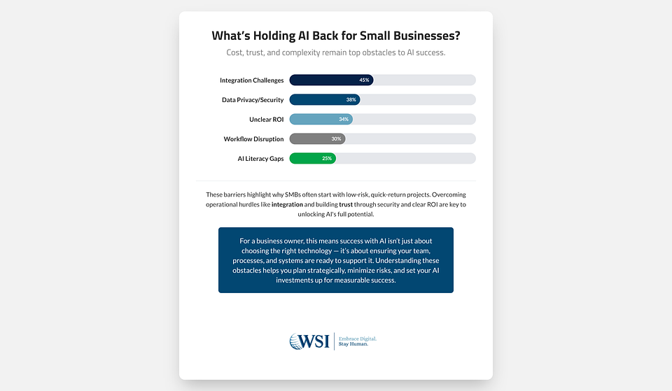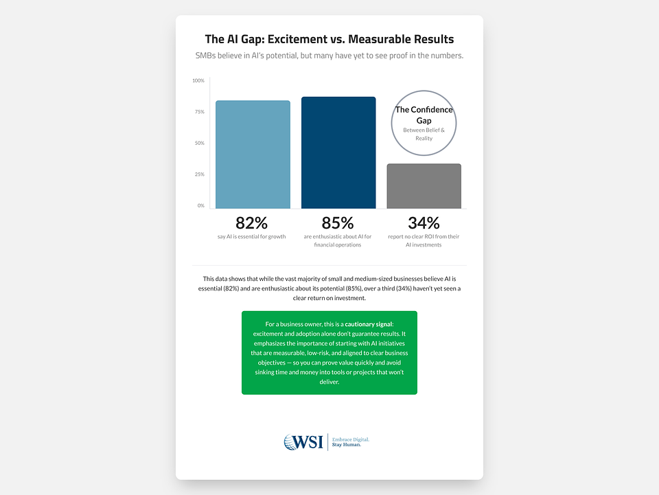 AI can absolutely deliver meaningful ROI for businesses. But success hinges on how it’s introduced. That's why it's crucial to design AI programs around low-risk pilot projects, measurable outcomes, and human-centered design. When wins are visible early, confidence builds quickly.